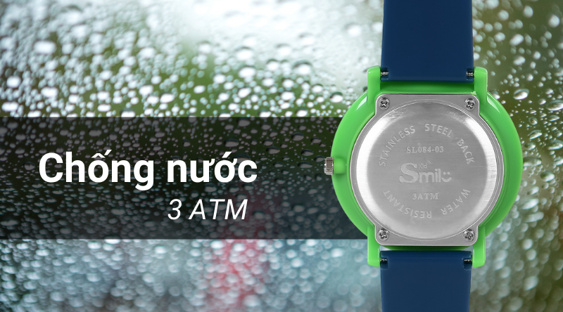 - Hệ số chống nước của mẫu đồng hồ trẻ em này là 3 ATM, có thể cho bé sử dụng khi rửa tay và đi mưa. Lưu ý: không sử dụng khi đi tắm, đi bơi, lặn.