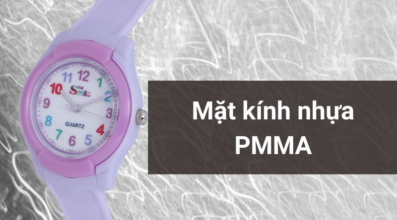 - Đồng hồ Smile Kid được trang bị khung viền làm từ nhựa ABS và dây đeo cũng được làm từ chất liệu nhựa không chỉ đem đến độ bền tối ưu, mà còn mang lại cảm giác thoải mái khi đeo. Mặt kính được làm từ nhựa PMMA có khả năng chịu lực tốt, khó vỡ.