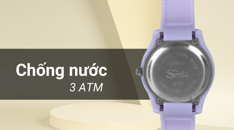 - Hệ số chống nước của mẫu đồng hồ trẻ em này là 3 ATM, có thể cho bé sử dụng khi rửa tay và đi mưa. Lưu ý: không sử dụng khi đi tắm, đi bơi, lặn.