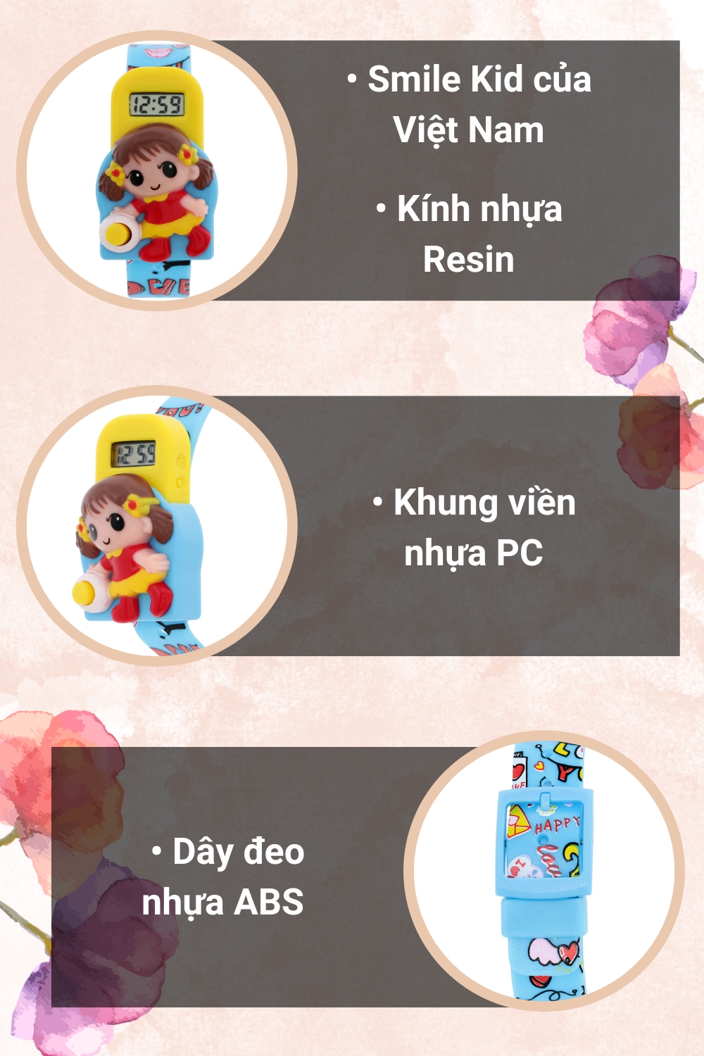 • Nổi tiếng là một thương hiệu đồng hồ đến từ Việt Nam, đồng hồ SMILE KID luôn được biết đến là một thương hiệu uy tín với các bậc phụ huynh, nhờ vào thiết kế an toàn cùng kiểu dáng sáng tạo, có thể phù hợp với các phong cách khác nhau của trẻ.