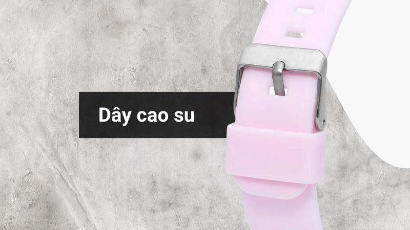 - Dây đeo cao su mềm mịn luôn mang đến vẻ ngoài đẹp mắt bởi màu sắc tươi tắn. Đặc biệt, khả năng chống thấm nước hiệu quả và khả năng đàn hồi tốt đem đến độ bền tối ưu.