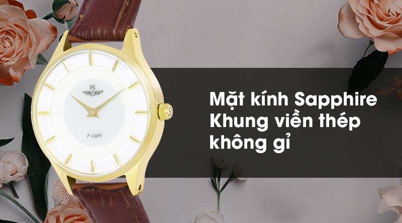 - Mặt kính đồng hồ SR Watch nữ có độ cứng cao, hầu như không thể bị phá vỡ