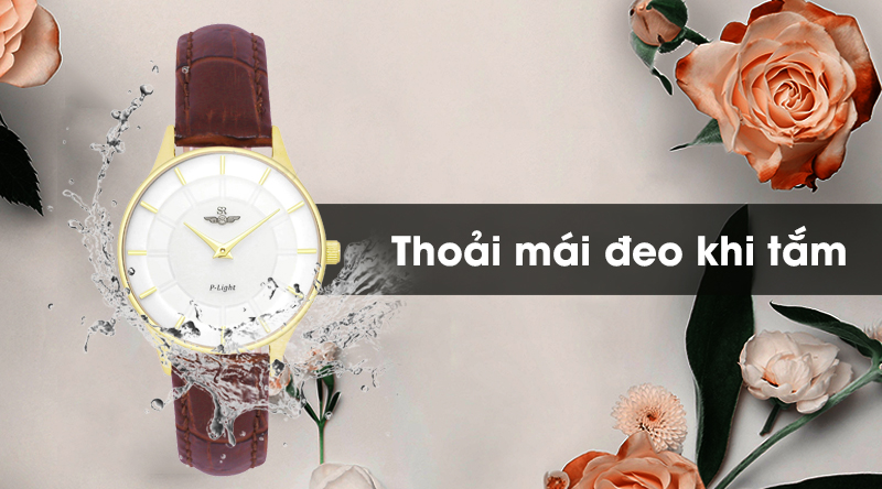 Độ chống nước 5 ATM, đeo được khi tắm rửa và đi mưa, không nên đeo đồng hồ nữ khi tham gia bơi lội và lặnĐồng hồ nữ SR Watch SL10070.4902PL có độ chống nước 5 ATM
