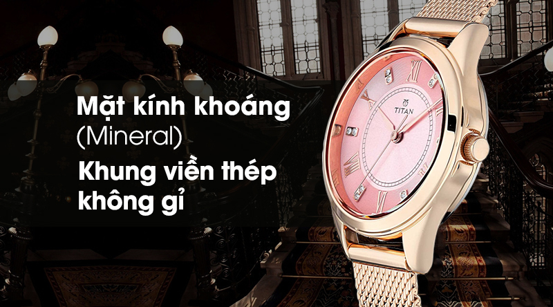 - Mặt kính của mẫu đồng hồ Titan nữ này có độ trong suốt cao, độ cứng khá, ít nứt vỡ khi bị va đập vừa phải.