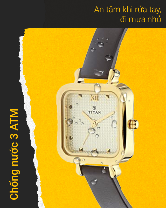- Hệ số chống nước 3 ATM cho người dùng an tâm khi đi mưa nhỏ và rửa tay, không nên đeo đồng hồ nữ này khi tắm, bơi lội