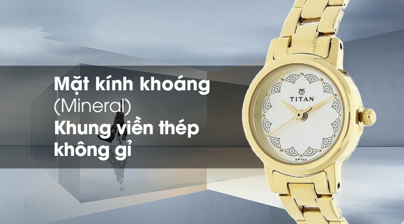 - Mặt kính của mẫu đồng hồ Titan nữ này có độ trong suốt cao, cứng cáp, không lóa mắt khi xem giờ dưới nắng.