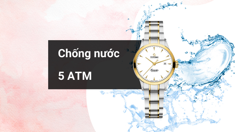 • Độ chống nước 5 ATM cho phép bạn đeo đồng hồ khi tắm, đi mưa, không nên mang khi bơi, lặn.