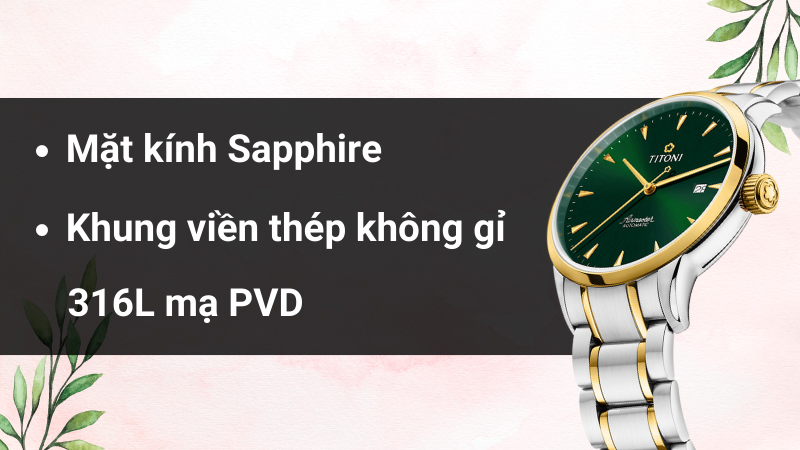 - Đồng hồ Titoni có sứ mệnh là chế tác ra những chiếc đồng hồ tinh xảo với độ chính xác cao, thiết kế đẹp mắt.