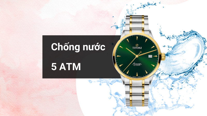 • Độ chống nước 5 ATM cho phép bạn đeo đồng hồ khi tắm, đi mưa, không nên mang khi bơi, lặn.