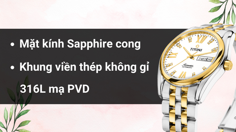 - Đồng hồ Titoni có sứ mệnh là chế tác ra những chiếc đồng hồ tinh xảo với độ chính xác cao, thiết kế đẹp mắt.