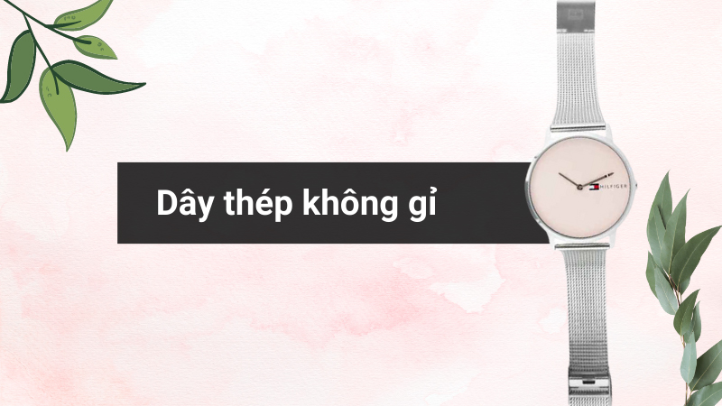 - Khung viền và dây đeo làm bằng thép không gỉ, đem đến độ bền và tuổi thọ cao cho đồng hồ