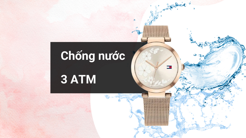 - Chống nước 3 ATM, không cần tháo đồng hồ ngay cả khi đi mưa, rửa tay nhưng không nên đeo khi lặn, bơi lội hoặc tắm