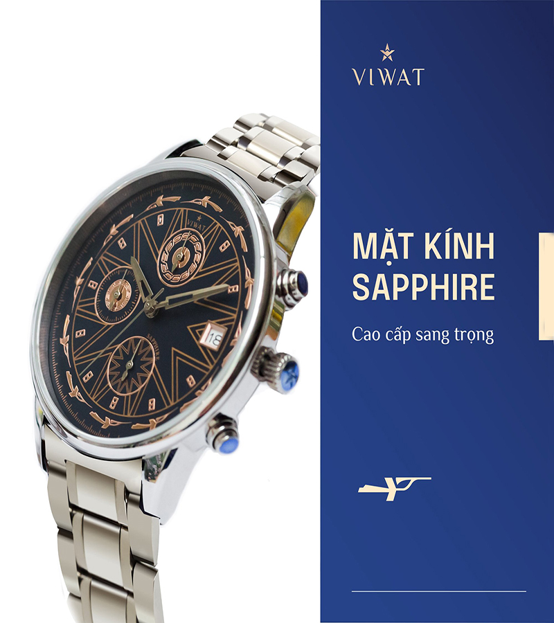 Đồng hồ ViWat Tinh Hoa 40 mm Nam V9.W1029D sở hữu những kích thước với tiêu chuẩn thông thường như đường kính mặt 40 mm, độ rộng dây 20 mm. Kính Sapphire là chất liệu mà hãng lựa chọn cho chiếc đồng hồ này nhằm tăng sự bền bỉ và sang trọng theo thời gian nhờ sở hữu độ bóng bắt mắt, chống trầy xước, có độ cứng và độ chịu lực cao cùng với khả năng chống ăn mòn tuyệt đối.
