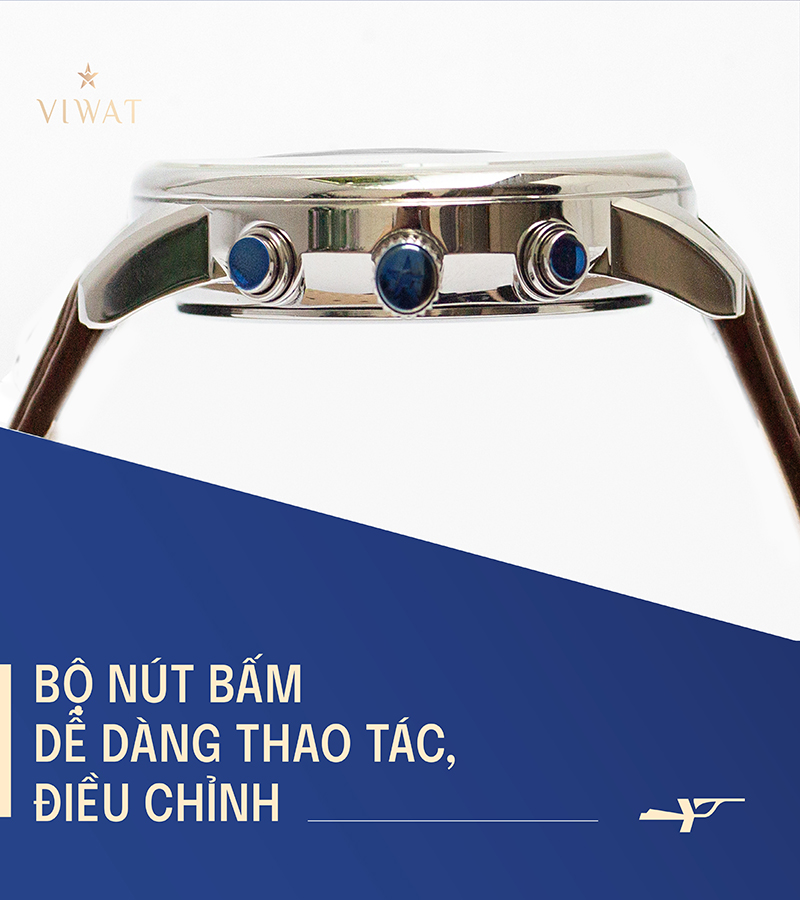 • Giống như các sản phẩm khác trong bộ sưu tập này, trên mặt đồng hồ ViWat Tinh Hoa 40 mm Nam V9.W1089B đều được hãng tích hợp các tiện ích thuận tiện như: bấm giờ thể thao và lịch ngày. Các tiện ích giúp người dùng chủ động theo dõi thời gian.