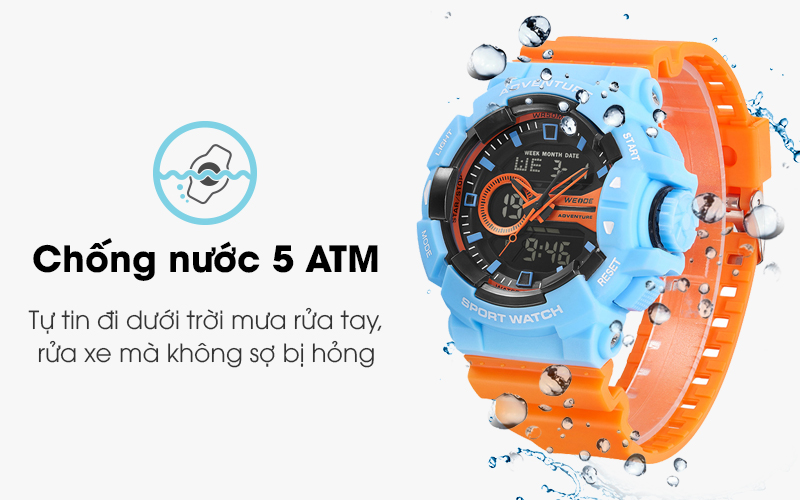 Đồng hồ nam có hệ số chống nước 50 mét, cho người dùng an tâm khi mang rửa tay, rửa xe và đi mưa mà không sợ đồng hồ hỏng.