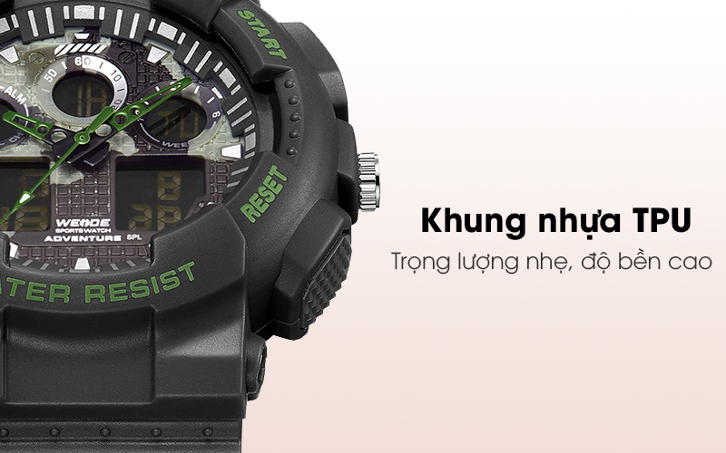 Hãng đồng hồ Weide trang bị cho khung viền máy với chất liệu nhựa TPU cho tổng thể đồng hồ được gọn nhẹ hơn, các bộ phận bên trong chiếc đồng hồ kim này cũng được bảo vệ nhờ vào sự đàn hồi tốt của khung khi có va chạm.