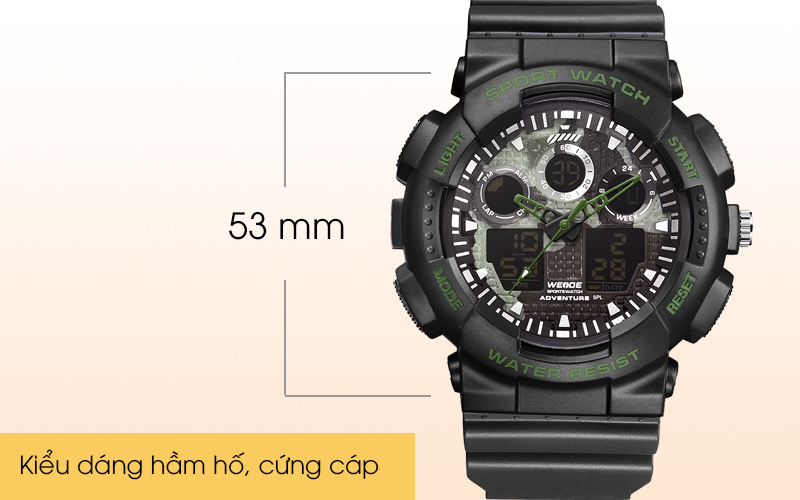 Được thiết kế là một chiếc đồng hồ nam nên đường kính mặt lên đến 54 mm, nhiều mặt điện tử đa chức năng, đáp ứng tốt nhiều nhu cầu khác nhau.
