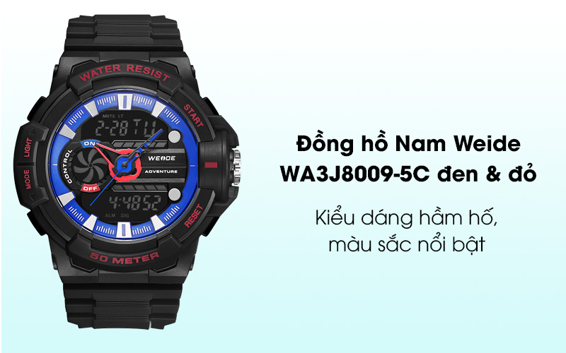 Đồng hồ nam Weide WA3J8009-5C đen & đỏ là mẫu đồng hồ quartz có kiểu dáng hầm hố nam tính mang đậm chất thể thao, phù hợp cho các bạn trẻ hiện đại.
