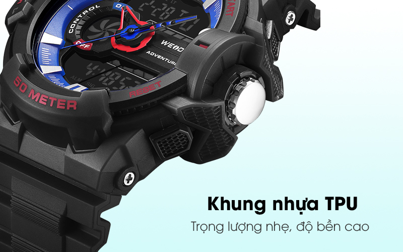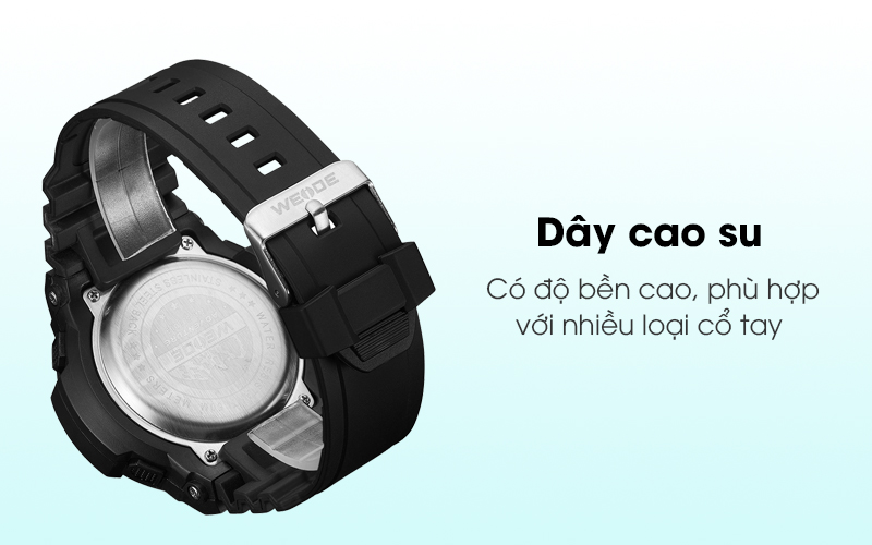 Bộ hung của đồng hồ Weide được làm từ nhựa TPU tạo cảm giác nhẹ nhàng tuy nhiên lại có độ bền cao, mang lại sự chắc chắn cho chiếc đồng hồ kim này và hoàn toàn an toàn khi tiếp xúc với da.