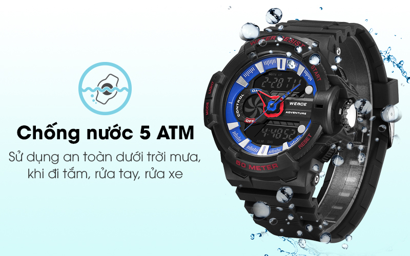 Chiếc đồng hồ nam này có khả năng chống nước tốt lên đến 5 ATM giúp người dùng có thể đi mưa, rửa tay hay tắm rửa một cách thoải mái mà không sợ ảnh hưởng đến đồng hồ.