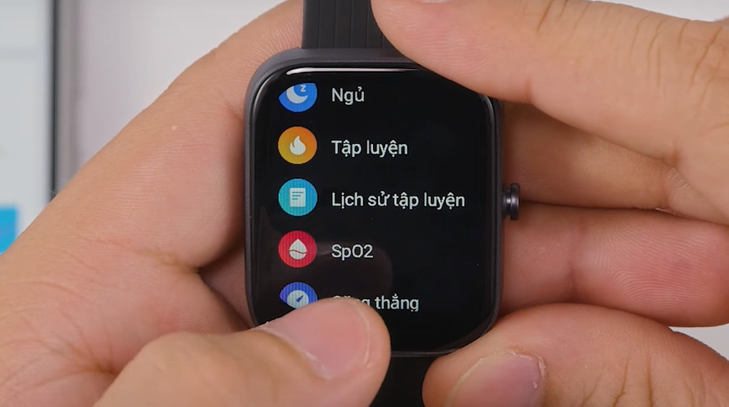 Kích thước 1.69 inch đối với mình thì đủ rộng để thực hiện các thao tác kéo, cuộn ngay trên màn hình cảm ứng. Các thông tin dạng văn bản, icon hay biểu đồ đều được thể hiện rõ ràng, chi tiết. Theo mình tìm hiểu thì màn hình sử dụng tấm nền TFT với khả năng hiển thị tốt và tiết kiệm năng lượng.