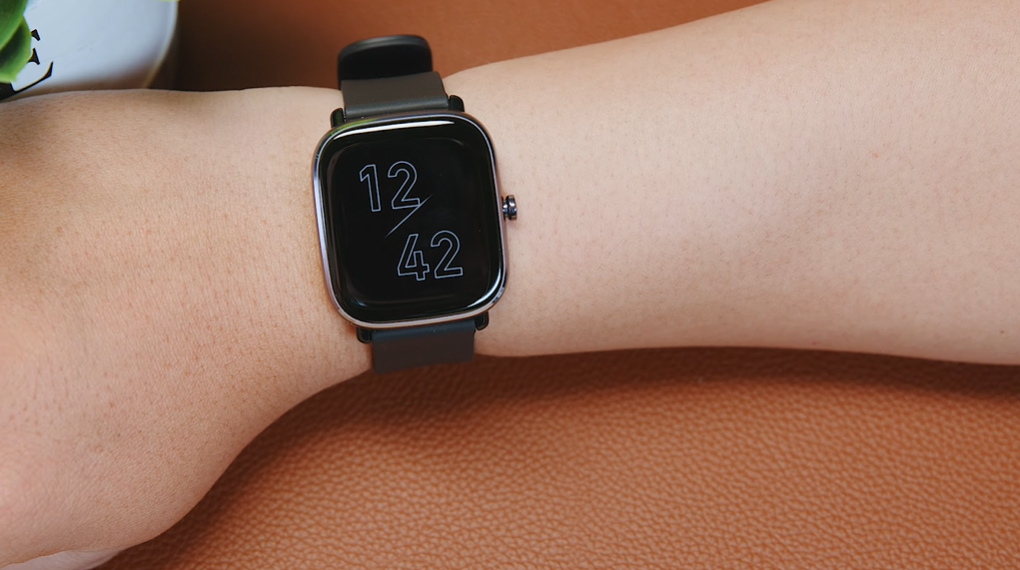 Ấn tượng đầu tiên với mình là Amazfit GTS 2 Mini khá nhẹ, khối lượng chỉ 19.5 g khi đeo gần như không có cảm giác nặng cổ tay. Mặt đồng hồ được bo cong 4 góc vô cùng tinh tế, đối với cổ tay nhỏ như mình đeo lên sẽ không bị thô.