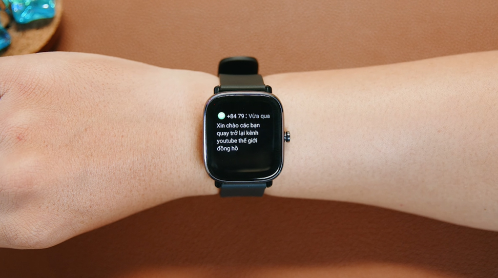 Về phần tin nhắn thì phần phông chữ dễ nhìn, không bị lỗi khoảng cách hay xuống dòng đột ngột. Dù là tin nhắn SMS hay ứng dụng thì Amazfit GTS 2 Mini vẫn hiển thị rất đầy đủ, kèm theo đó là biểu tượng của ứng dụng để mình có thể dễ dàng phân biệt.