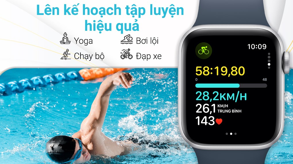 Apple Watch SE 2 đáp ứng tốt nhu cầu tập luyện cơ bản của hầu hết mọi người, trong đó có các chế độ tập phổ biến như: Yoga, Pilates, chạy bộ, đạp xe, HIIT, bơi lội,...