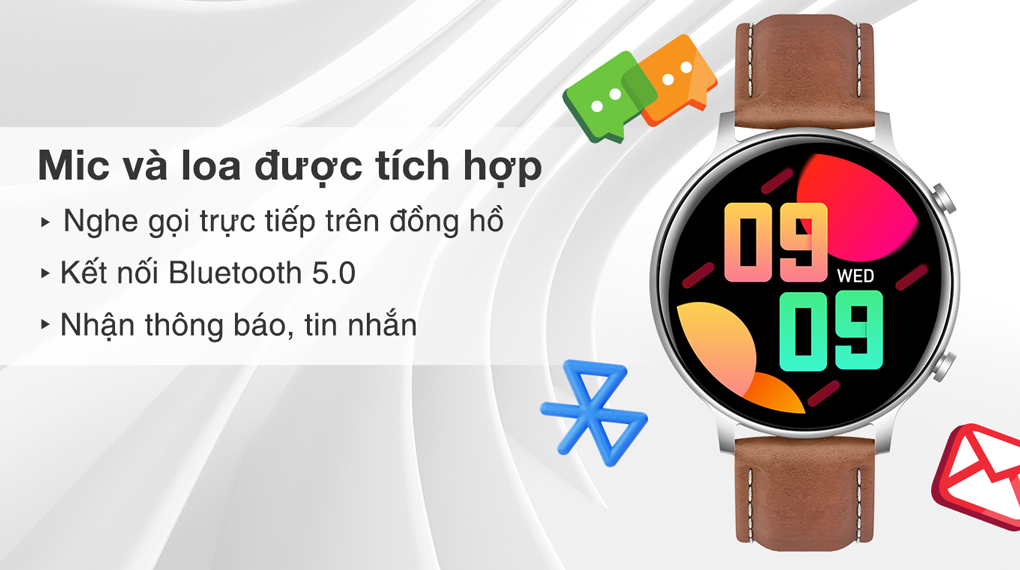 Đồng hồ sử dụng phương thức kết nối không dây Bluetooth v5.0 cho đường truyền ổn định, các thông báo, tin nhắn hoặc cuộc gọi đều được hiển thị nhanh chóng, bạn không cần phải lo lắng sẽ bỏ lỡ thông tin khi không kiểm tra điện thoại thường xuyên.