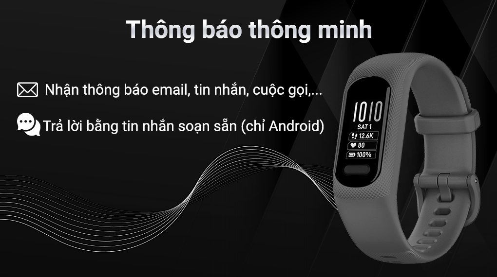 Vòng đeo tay thông minh Garmin Vivosmart 5 chính là lựa chọn hoàn hảo cho những ai đang tìm kiếm một thiết bị đeo tay thông minh có thiết kế nhỏ gọn nhưng vẫn được trang bị đầy đủ các tiện ích cần thiết như theo dõi sức khỏe và luyện tập, nhận thông báo,...