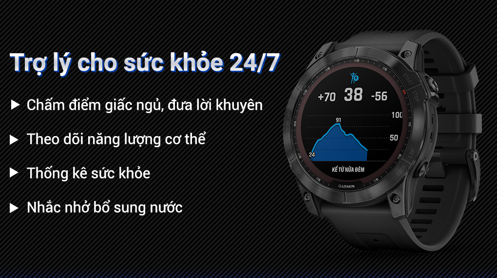 Ngoài ra, với tính năng Khuyến cáo thời gian phục hồi (Recovery Time Advisor) sẽ thông báo sau mỗi buổi tập cho bạn biết khi nào bạn sẽ sẵn sàng cho buổi tập tiếp theo. Đồng hồ này còn có thể theo dõi được mức độ stress, nhịp thở, theo dõi nhịp tim 24h, tính lượng calories tiêu thụ,... góp phần cải thiện hiệu suất và sức khoẻ của bạn trong quá trình luyện tập.