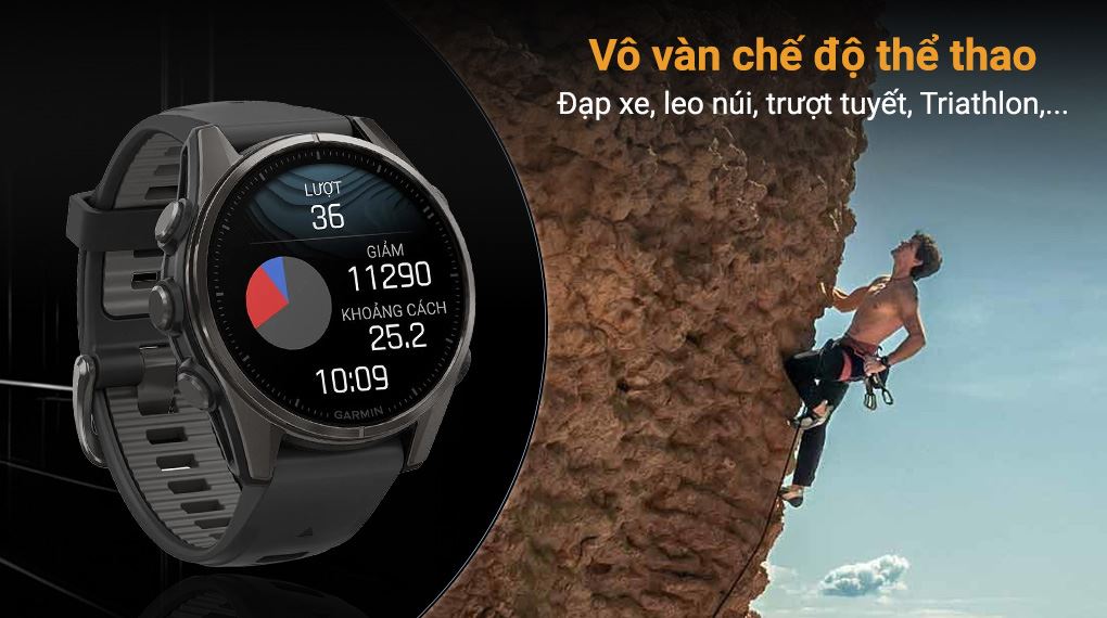 Với Garmin Fenix 8, người dùng có thể thoải mái tham gia các hoạt động tập luyện ngoài trời, từ các bài tập cơ bản như chạy bộ, bơi lội, đạp xe, cho đến các môn thể thao khắc nghiệt như leo núi, đi bộ đường dài,... Đặc biệt, tính năng luyện tập cường độ cao HIIT với nhiều bài tập đa dạng như AMRAP, EMOM, Tabata mang lại trải nghiệm tập luyện thú vị và hiệu quả.