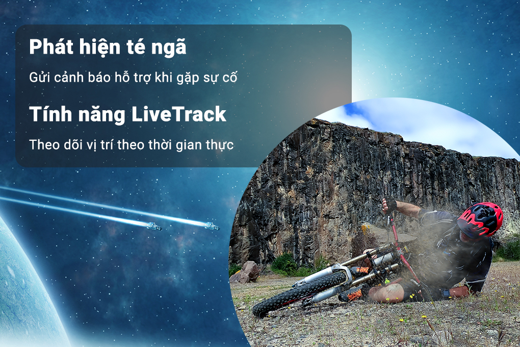 Ngoài ra, đồng hồ còn phát hiện được những tai nạn bất ngờ trong quá trình di chuyển, luyện tập và gửi thông báo SOS đến số liên hệ khẩn cấp kèm theo vị trí theo thời gian thực của bạn để nhận sự hỗ trợ. Bên cạnh đó, tính năng LiveTrack sẽ cho phép bạn bè, gia đình xem trước kế hoạch luyện tập của bạn, theo dõi vị trí trong thời gian thực,... đảm bảo an toàn hơn khi bạn luyện tập một mình.