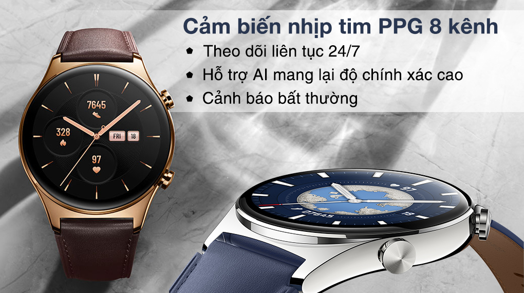 Honor GS3 sở hữu cảm biến nhịp tim PPG 8 kênh hỗ trợ trí thông minh nhân tạo AI, giúp bạn theo dõi nhịp tim liên tục 24/7 và gửi cảnh báo khi phát hiện bất thường với độ chính xác được cải thiện hơn so với thế hệ đàn anh.