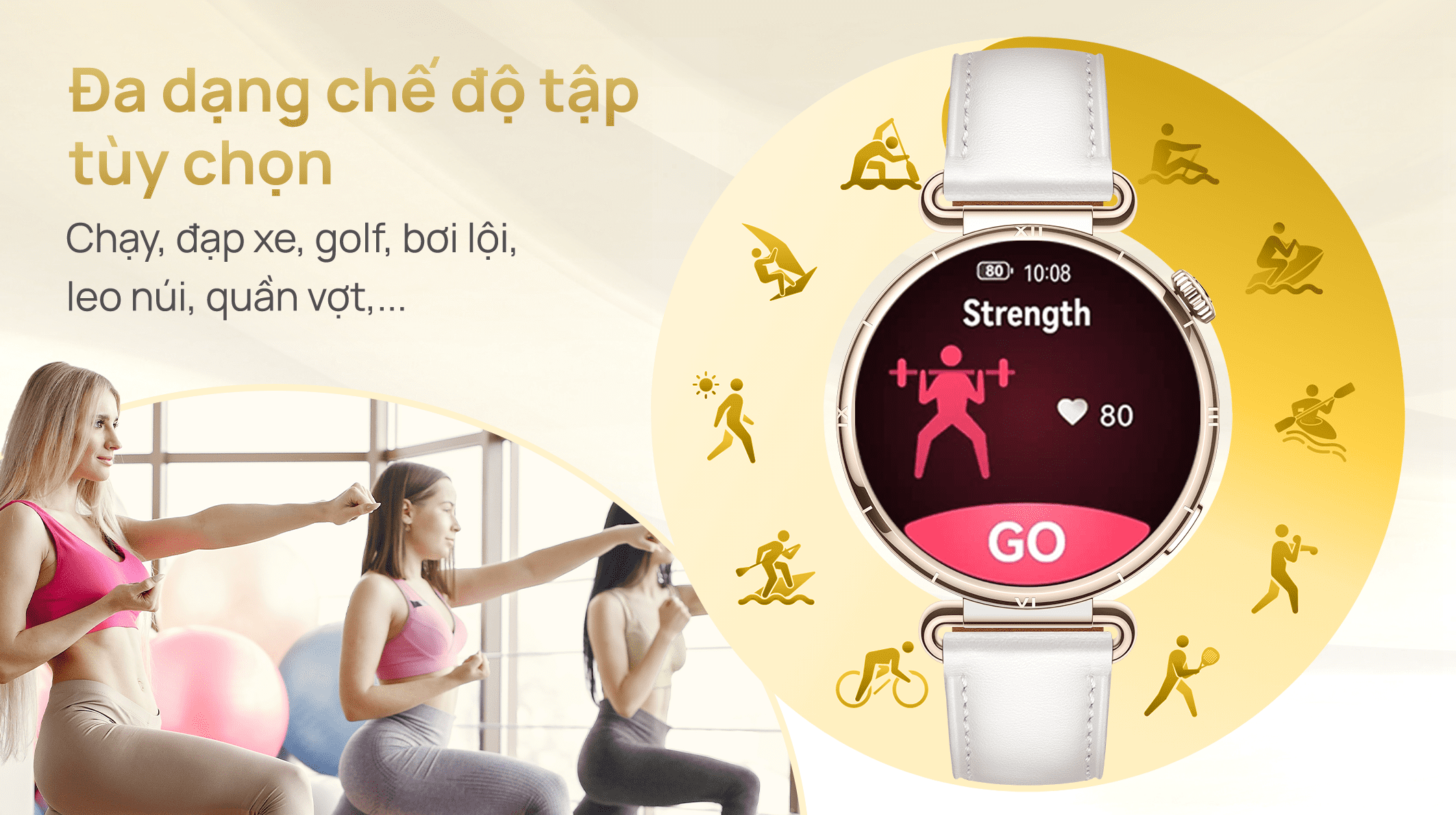 Đồng hồ thông minh đa tiện ích nhà Huawei được thiết kế để trở thành người bạn đồng hành không thể thiếu của mọi tín đồ thể thao, bất kể trình độ. Hơn cả một chiếc đồng hồ, đây là một thiết bị sở hữu danh mục chế độ tập luyện phong phú, bao gồm cả các môn phổ biến hay các hoạt động đặc thù như leo núi, trượt băng,... Đặc biệt, thiết bị còn ghi lại các chỉ số khi bạn luyện tập, để bạn có thể điều chỉnh và đạt được hiệu suất tốt nhất trong hành trình rèn luyện.
