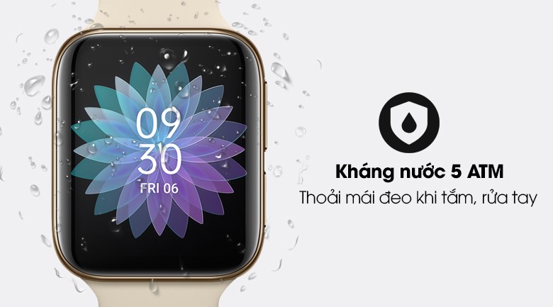Đồng hồ có hệ số kháng nước 5 ATM, nghĩa là thiết bị có thể chịu được áp lực tương đương với độ sâu 50 mét. Bật tính năng khóa chống nước trước khi mang sản phẩm vào nước, đi mưa, không ấn các nút điều chỉnh, không dùng trong phòng tắm hơi, tắm nước nóng.