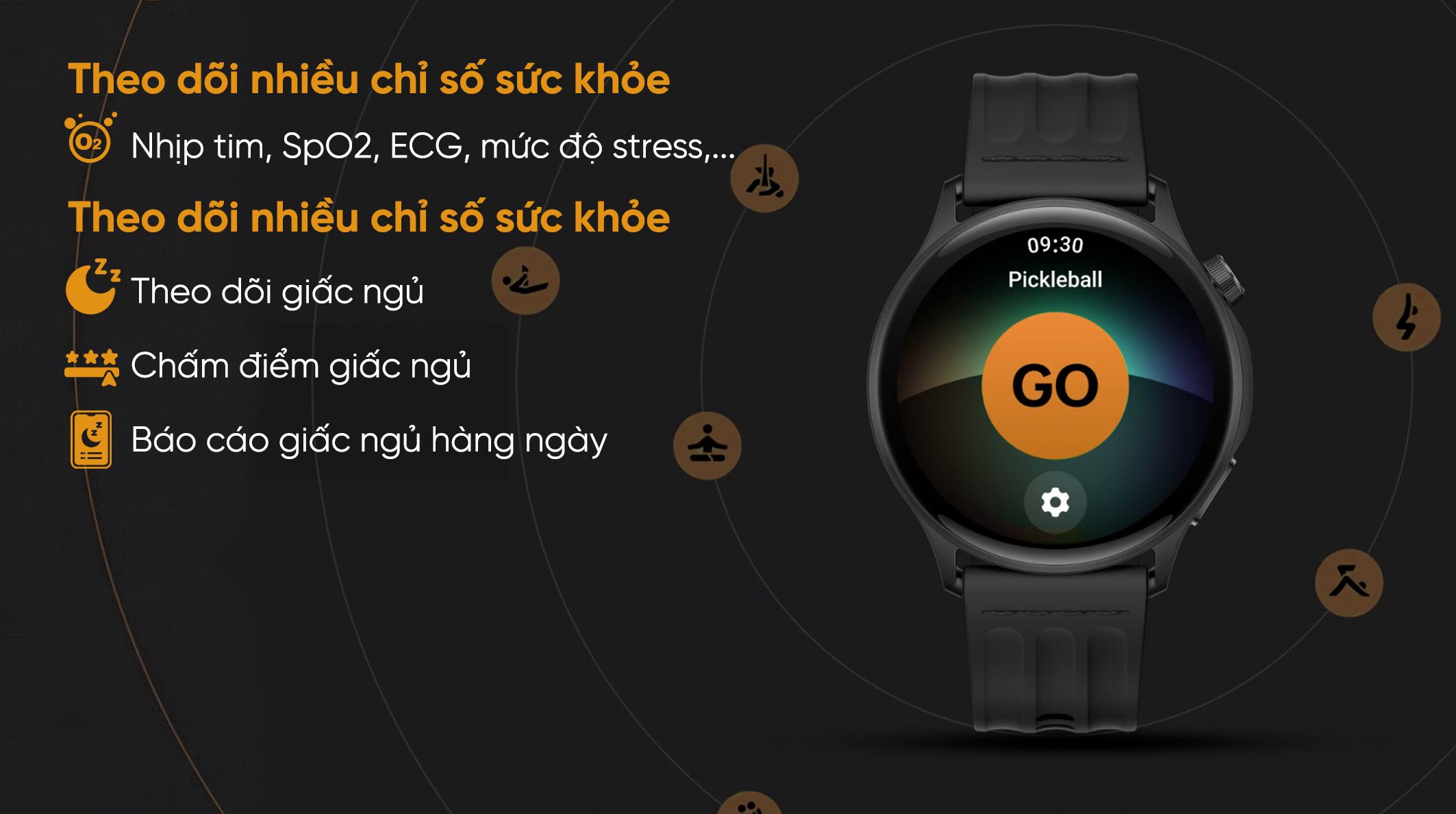 Đồng hồ thông minh đa tiện ích nhà OPPO được trang bị cảm biến ECG, hỗ trợ phân tích tín hiệu tim mạch chuyên sâu. Đồng hồ còn theo dõi liên tục các chỉ số quan trọng như nhịp tim, SpO₂, chất lượng giấc ngủ và mức độ vận động, giúp người dùng nắm bắt tình trạng sức khỏe tổng thể mỗi ngày.