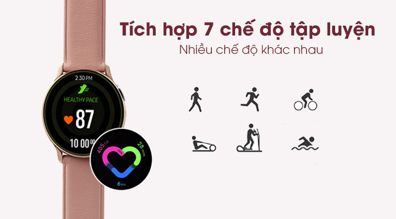 Samsung Galaxy Watch Active 2 sẽ có 7 bài tập cho bạn lựa chọn hằng ngày với những chế độ tập luyện khác nhau, một trợ thủ đắt lực cho việc nâng cao sức khỏe hằng ngày của bạn.