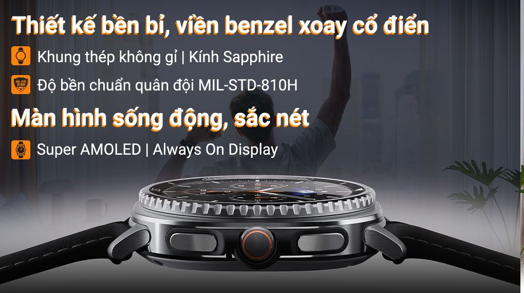 Galaxy Watch 8 Classic LTE được trang bị màn hình Super AMOLED thế hệ mới với độ sáng đỉnh điểm 3000 nits - giúp hiển thị rõ nét ngay cả dưới ánh nắng trực tiếp. Không chỉ sắc nét, màn hình còn được tối ưu hóa với giao diện mới, sắp xếp logic hơn, mượt hơn và dễ tiếp cận hơn. Viền xoay giúp bạn cuộn nội dung mà không cần chạm vào màn hình, giữ cho mặt kính luôn sạch và rõ nét - một điểm cộng đặc trưng chỉ có ở dòng Classic.