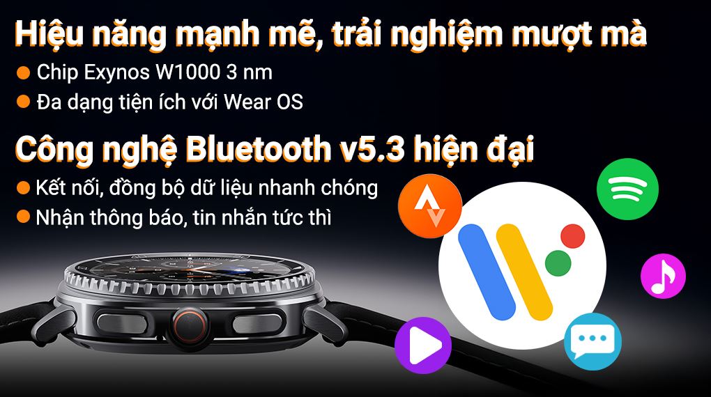 Galaxy Watch 8 Classic LTE 46 mm được trang bị vi xử lý Exynos W1000 - dòng chip đeo tay cao cấp nhất của Samsung tính đến thời điểm hiện tại. Sản xuất trên tiến trình 3 nm mới nhất, con chip này không chỉ tăng hiệu năng xử lý lên gấp ba lần mà còn cải thiện khả năng tiết kiệm điện năng đến 30% so với chip 5 nm trước đó.