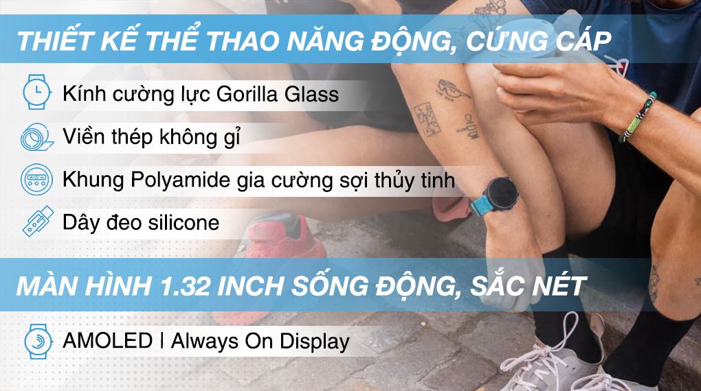 Bên cạnh đó, khả năng kháng nước chuẩn 5 ATM cho phép bạn yên tâm sử dụng khi bơi lội ở vùng nước nông hoặc luyện tập dưới mưa mà không lo ảnh hưởng đến linh kiện bên trong, mang lại sự bền bỉ và linh hoạt trong mọi điều kiện sử dụng.