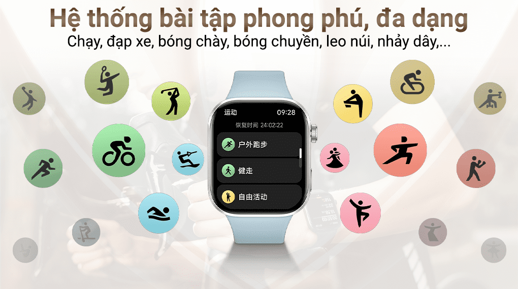 Đối với những người yêu thích vận động, chiếc smartwatch thời trang sành điệu này cung cấp một kho tàng bài tập khổng lồ với hơn 150 chế độ thể thao từ cơ bản như đi bộ, chạy bộ đến các môn đặc thù như bơi lội hay leo núi,...