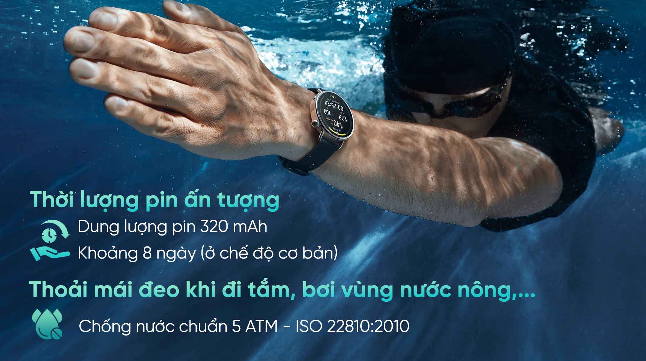Chuẩn chống nước 5 ATM - ISO 22810:2010 cho phép sử dụng an toàn khi rửa tay, đi mưa hay bơi lội ở vùng nước nông. Tuy nhiên, người dùng nên tránh dùng trong phòng xông hơi hoặc tiếp xúc trực tiếp với nước nóng để đảm bảo độ bền.