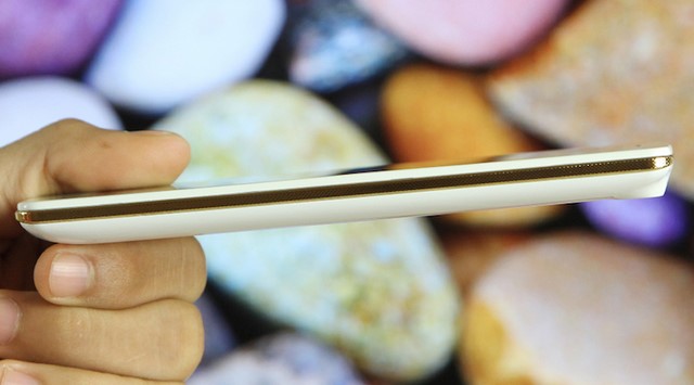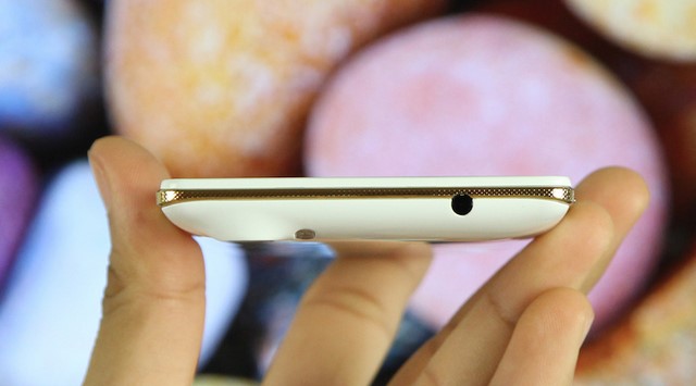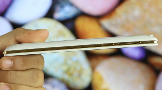 Viền máy được làm giả kim loại màu vàng óng có các chấm tròn nhỏ in dập nổi khi sờ vào cho cảm giác sần và cầm chắc tay hơn.