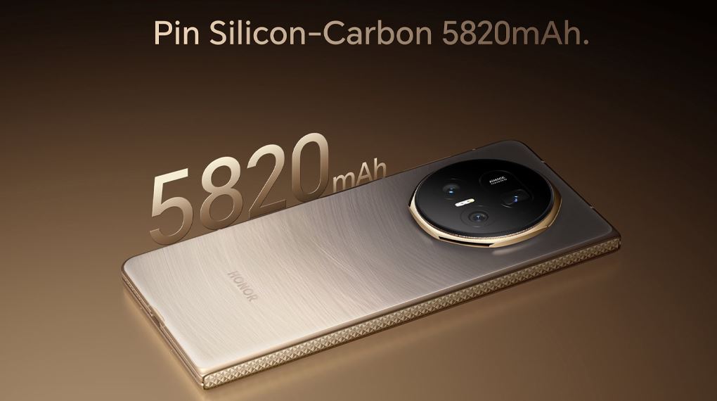 Pin silicon-carbon 5820 mAh là một trong những ưu điểm đáng chú ý của HONOR Magic V5. Loại pin mới này có khả năng chứa nhiều năng lượng hơn dù kích thước vẫn rất gọn, nhờ đó thời gian sử dụng được kéo dài rõ rệt. Với điện thoại gập, đây là lợi thế lớn, giúp bạn thoải mái dùng màn hình lớn cho công việc hay giải trí mà không phải lo sạc liên tục.