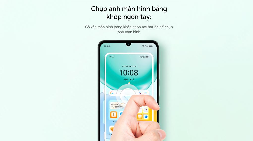 HONOR X5c Plus 128GB hỗ trợ chụp màn hình nhanh bằng thao tác gõ khớp ngón tay, giúp lưu thông tin tiện lợi mà không cần dùng phím cứng. Bên cạnh đó, máy còn được trang bị đầy đủ kết nối như Wi-Fi băng tần kép, Bluetooth 5.1 và NFC, đáp ứng tốt nhu cầu chia sẻ dữ liệu và sử dụng dịch vụ số hiện nay.
