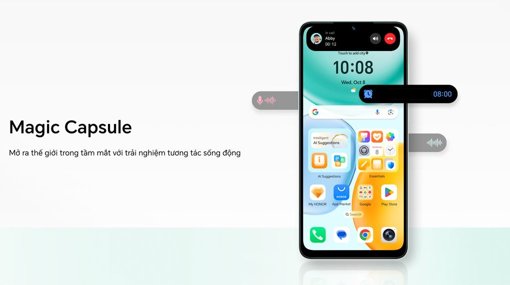 HONOR X5c Plus trang bị tính năng Magic Capsule hiển thị thông báo trực quan, giúp người dùng dễ dàng theo dõi thông tin nhanh