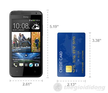 Desire 300 có kích cỡ không lớn hơn mấy so với chiếc thẻ rút tiền