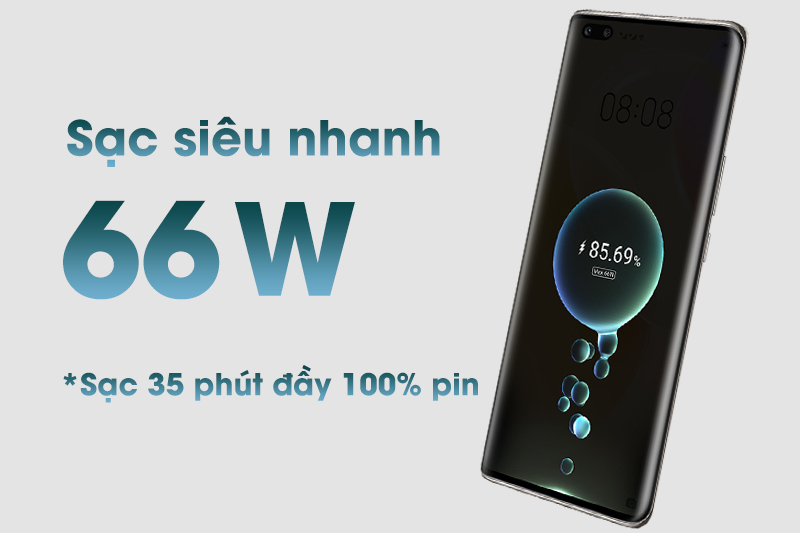 Điểm nhấn trên chiếc điện thoại Huawei Nova 8 Pro là khả năng sạc siêu nhanh ấn tượng với công suất lên đến 66 W, chỉ trong khoảng 15 phút có thể nạp 60% năng lượng và 35 phút đầy 100%.