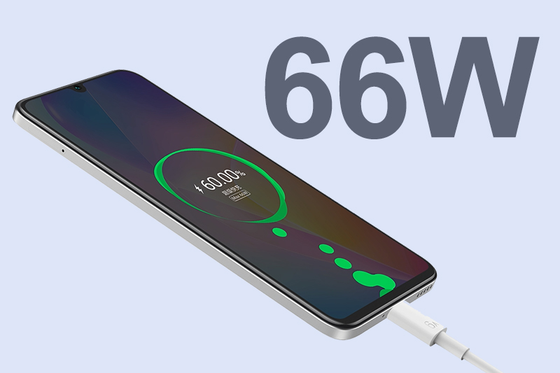 Với mức pin chỉ là 3800 mAh nhưng bù lại chiếc máy nổi trội với khả năng sạc siêu nhanh khi được tích hợp công nghệ sạc pin nhanh Super Fast Charge với công suất lên tới 66 W, chỉ trong khoảng 15 phút máy sạc được 60% và khoảng 35 phút là đầy 100%.
